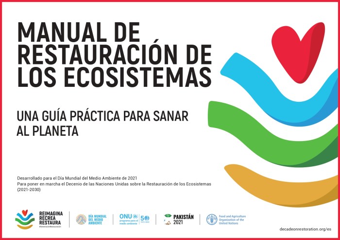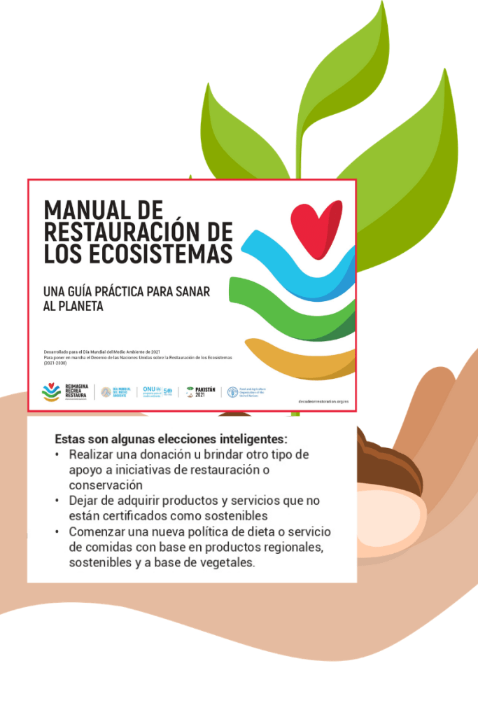 El documento del Fondo de las Naciones Unidas para el Medio Ambiente y la Organización de las Naciones Unidas para la Alimentación y la Agricultura (PNUMA y FAO), fue desarrollado para el Día Mundial del Medio Ambiente 2021, para poner en marcha el Decenio de las Naciones Unidas para la Restauración de los Ecosistemas (2021 – 2030).